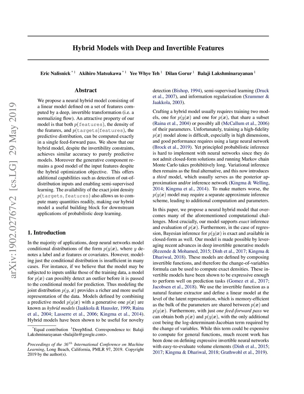 Hybrid Models with Deep and Invertible Features