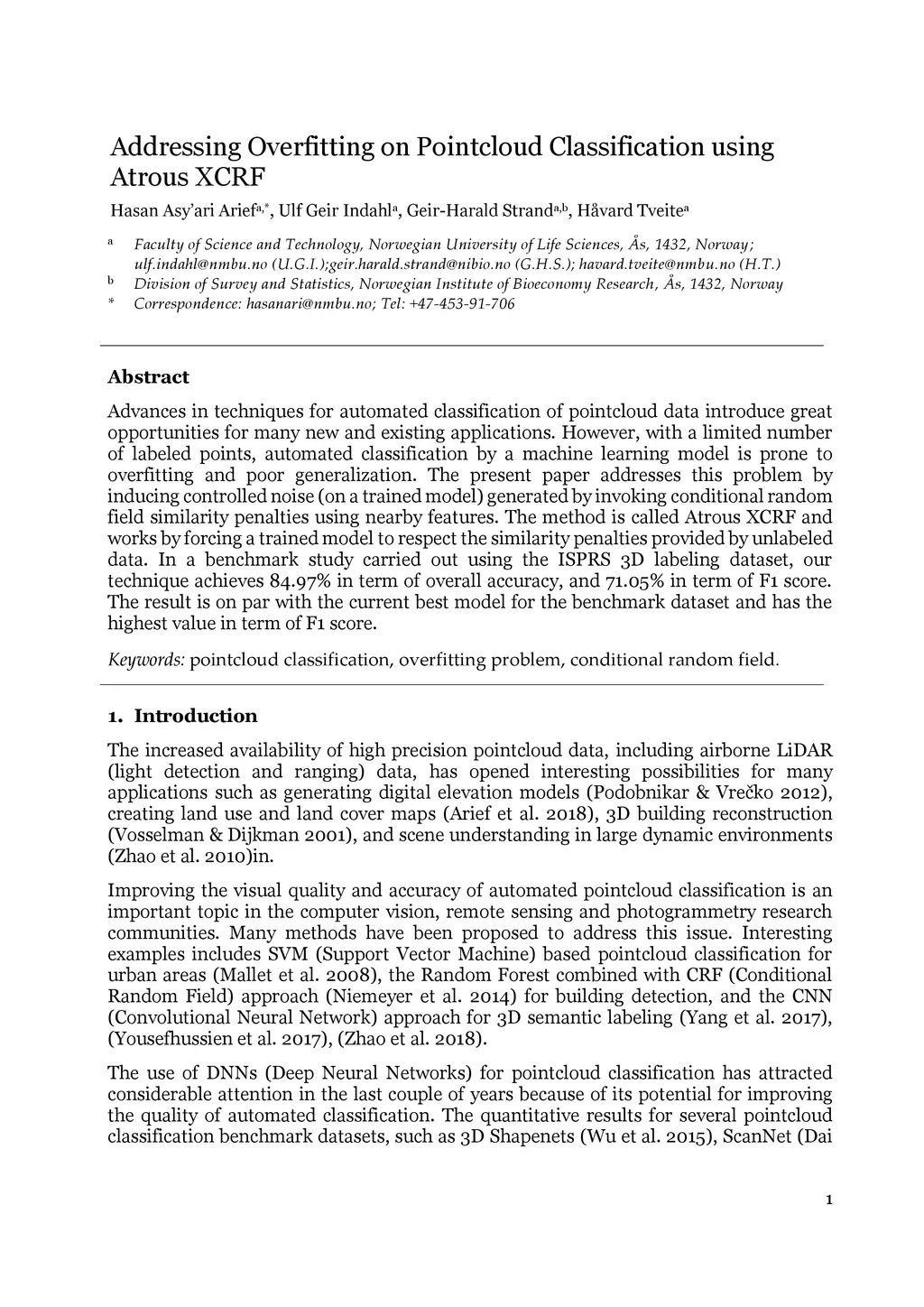 Addressing Overfitting on Pointcloud Classification using Atrous XCRF