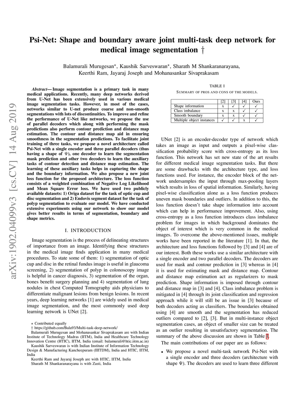 Psi-Net: Shape and boundary aware joint multi-task deep network for medical image segmentation