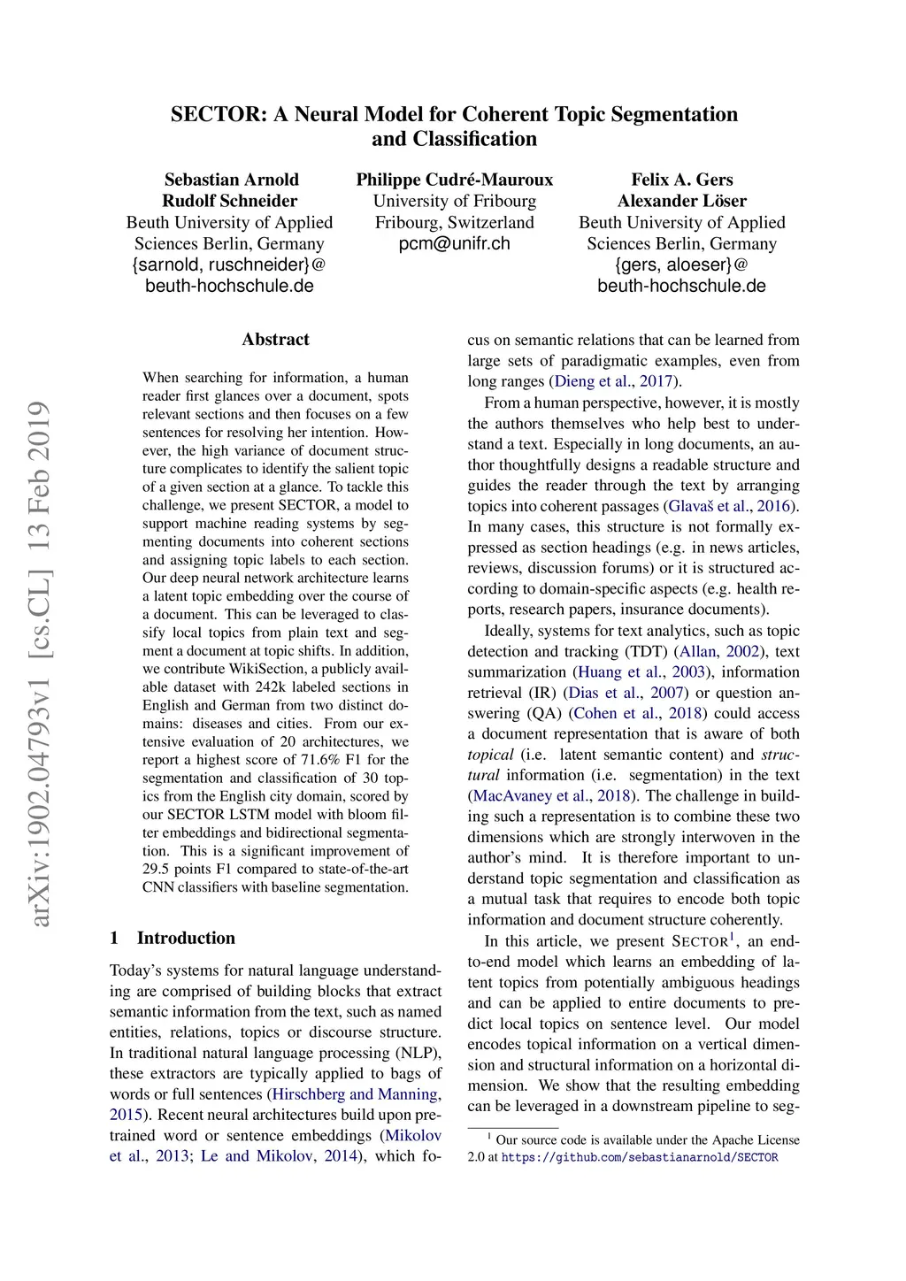 SECTOR: A Neural Model for Coherent Topic Segmentation and