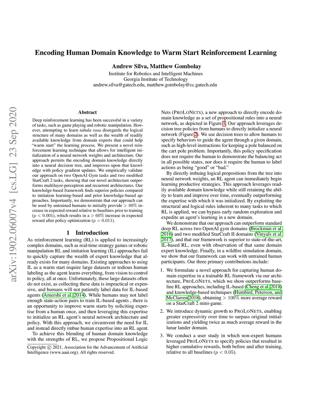 Deep reinforcement learning has been successful in a variety of tasks, such as game playing and robotic manipulation. However, attempting to learn \textit{tabula rasa} disregards the logical structure of many domains as well as the wealth of readily available knowledge from domain experts that could help "warm start" the learning process. We present a novel reinforcement learning technique that allows for intelligent initialization of a neural network weights and architecture. Our approach permits the encoding domain knowledge directly into a neural decision tree, and improves upon that knowledge with policy gradient updates. We empirically validate our approach on two OpenAI Gym tasks and two modified StarCraft 2 tasks, showing that our novel architecture outperforms multilayer-perceptron and recurrent architectures. Our knowledge-based framework finds superior policies compared to imitation learning-based and prior knowledge-based approaches. Importantly, we demonstrate that our approach can be used by untrained humans to initially provide >80% increase in expected reward relative to baselines prior to training (p < 0.001), which results in a >60% increase in expected reward after policy optimization (p = 0.011).
