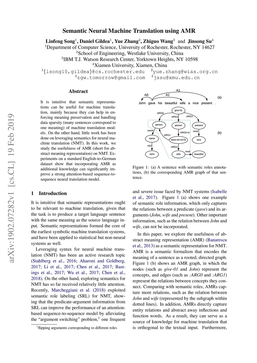 Semantic Neural Machine Translation using AMR