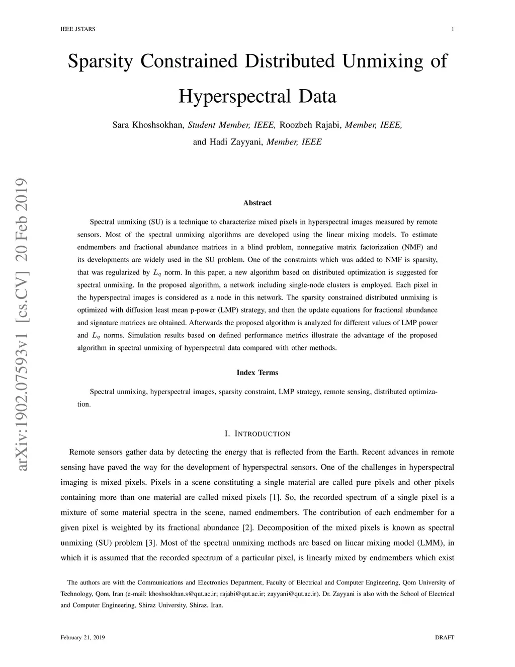 Sparsity Constrained Distributed Unmixing of Hyperspectral Data