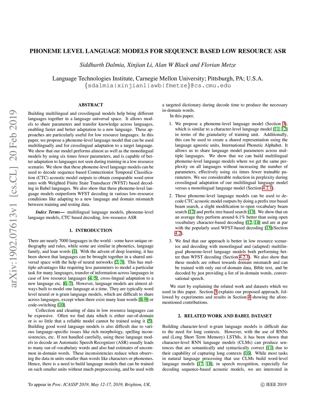 Phoneme Level Language Models for Sequence Based Low Resource ASR