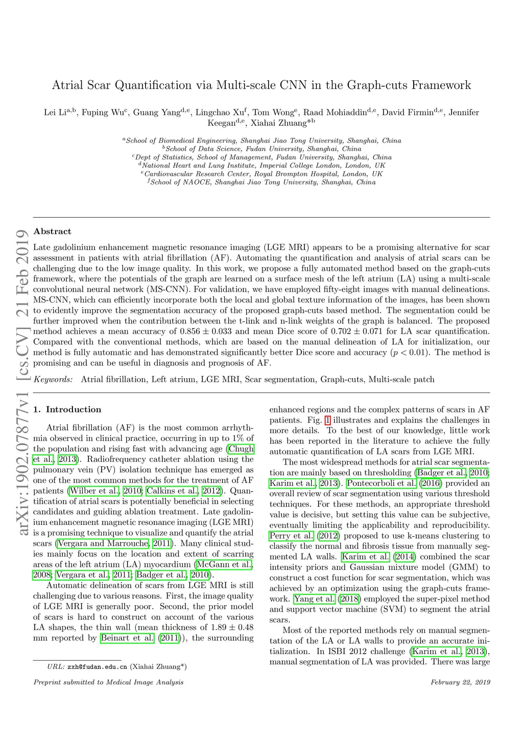 Atrial Scar Quantification via Multi-scale CNN in the Graph-cuts