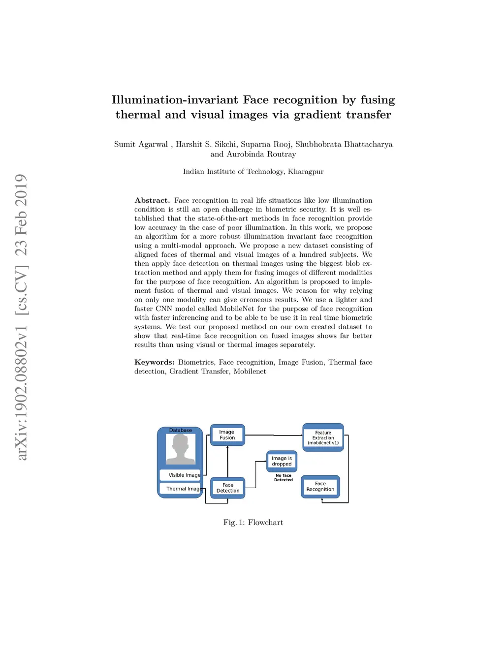 Face recognition in real life situations like low illumination condition is still an open challenge in biometric security. It is well established that the state-of-the-art methods in face recognition provide low accuracy in the case of poor illumination. In this work, we propose an algorithm for a more robust illumination invariant face recognition using a multi-modal approach. We propose a new dataset consisting of aligned faces of thermal and visual images of a hundred subjects. We then apply face detection on thermal images using the biggest blob extraction method and apply them for fusing images of different modalities for the purpose of face recognition. An algorithm is proposed to implement fusion of thermal and visual images. We reason for why relying on only one modality can give erroneous results. We use a lighter and faster CNN model called MobileNet for the purpose of face recognition with faster inferencing and to be able to be use it in real time biometric systems. We test our proposed method on our own created dataset to show that real-time face recognition on fused images shows far better results than using visual or thermal images separately.