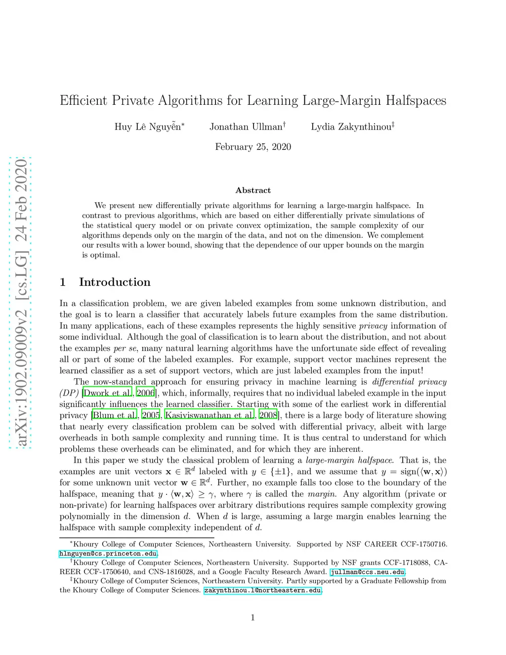 We present new differentially private algorithms for learning a large-margin halfspace. In contrast to previous algorithms, which are based on either differentially private simulations of the statistical query model or on private convex optimization, the sample complexity of our algorithms depends only on the margin of the data, and not on the dimension. We complement our results with a lower bound, showing that the dependence of our upper bounds on the margin is optimal.