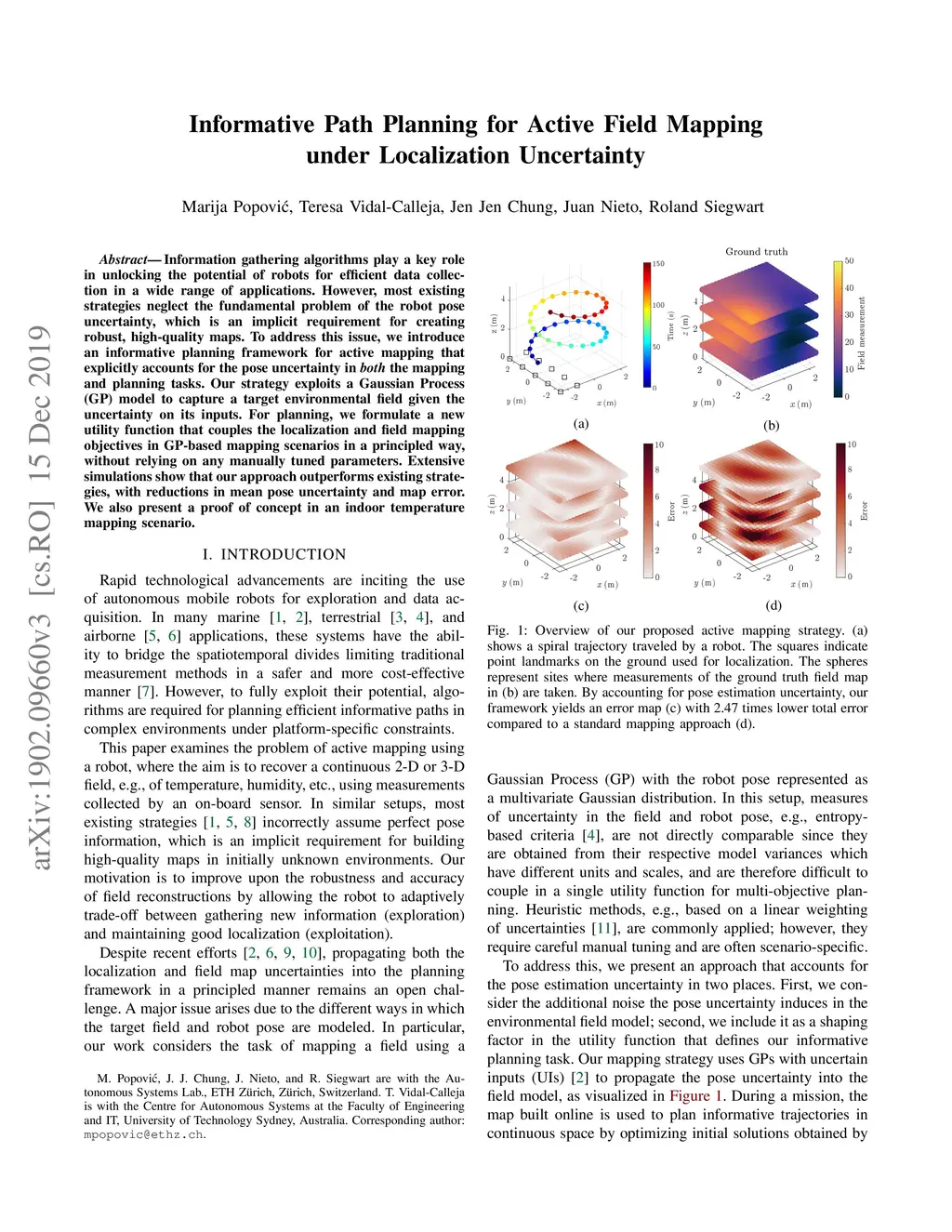 Information gathering algorithms play a key role in unlocking the potential of robots for efficient data collection in a wide range of applications. However, most existing strategies neglect the fundamental problem of the robot pose uncertainty, which is an implicit requirement for creating robust, high-quality maps. To address this issue, we introduce an informative planning framework for active mapping that explicitly accounts for the pose uncertainty in both the mapping and planning tasks. Our strategy exploits a Gaussian Process (GP) model to capture a target environmental field given the uncertainty on its inputs. For planning, we formulate a new utility function that couples the localization and field mapping objectives in GP-based mapping scenarios in a principled way, without relying on any manually tuned parameters. Extensive simulations show that our approach outperforms existing strategies, with reductions in mean pose uncertainty and map error. We also present a proof of concept in an indoor temperature mapping scenario.