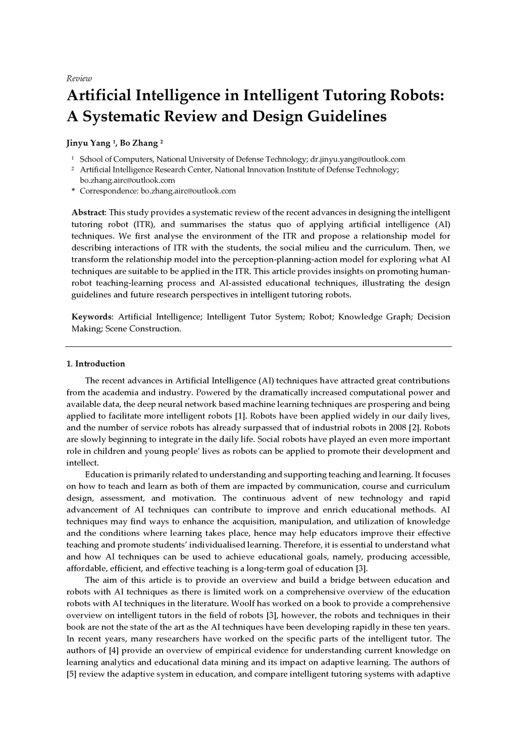 Artificial Intelligence in Intelligent Tutoring Robots: A Systematic