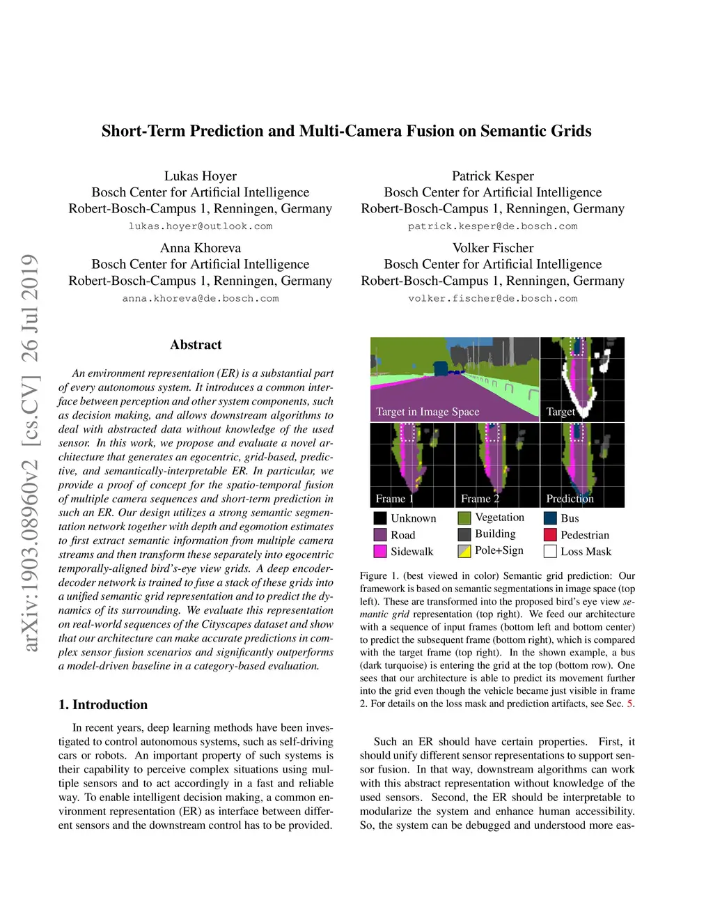 Short-Term Prediction and Multi-Camera Fusion on Semantic Grids