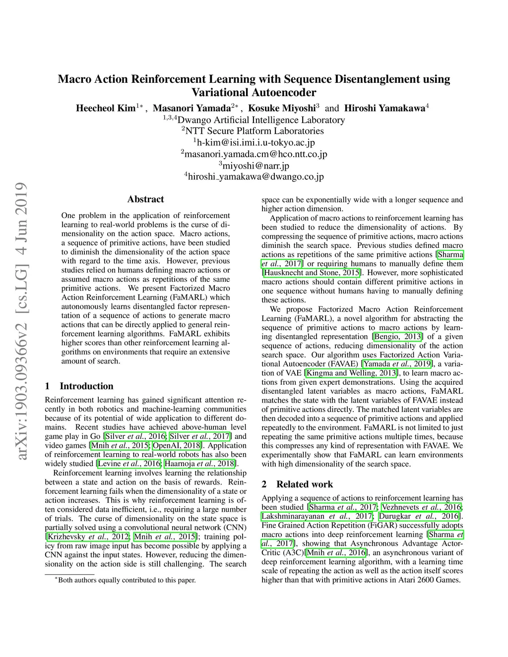 Macro Action Reinforcement Learning with Sequence Disentanglement using