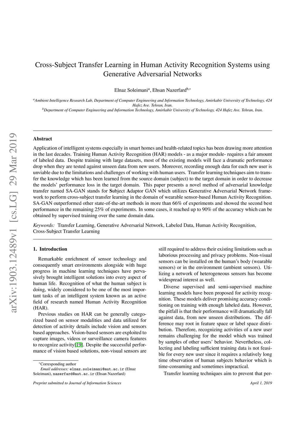 Cross-Subject Transfer Learning in Human Activity Recognition Systems