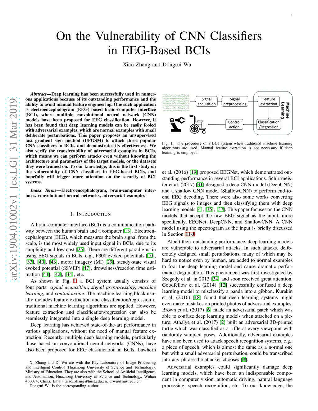 On the Vulnerability of CNN Classifiers in EEG-Based BCIs