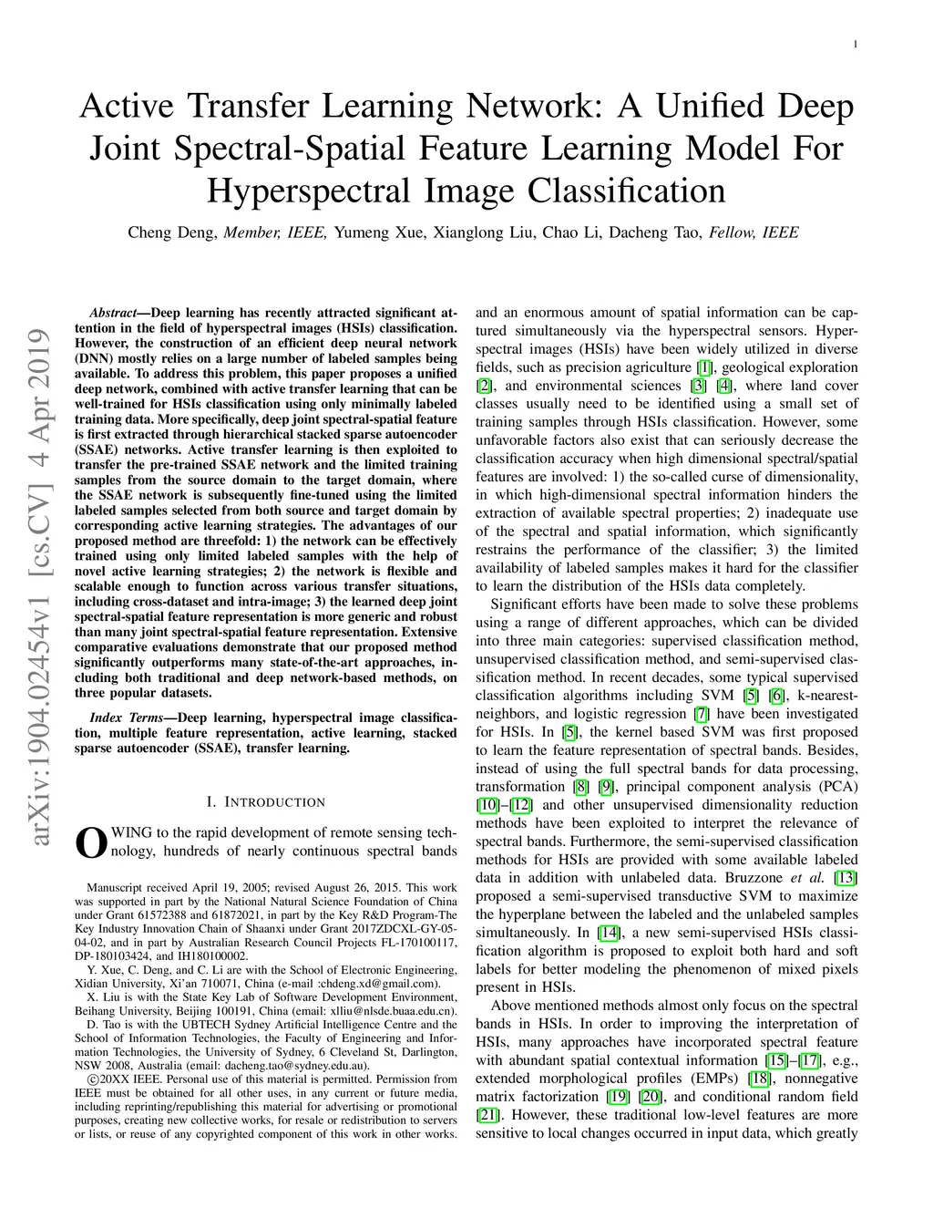 Active Transfer Learning Network: A Unified Deep Joint Spectral-Spatial