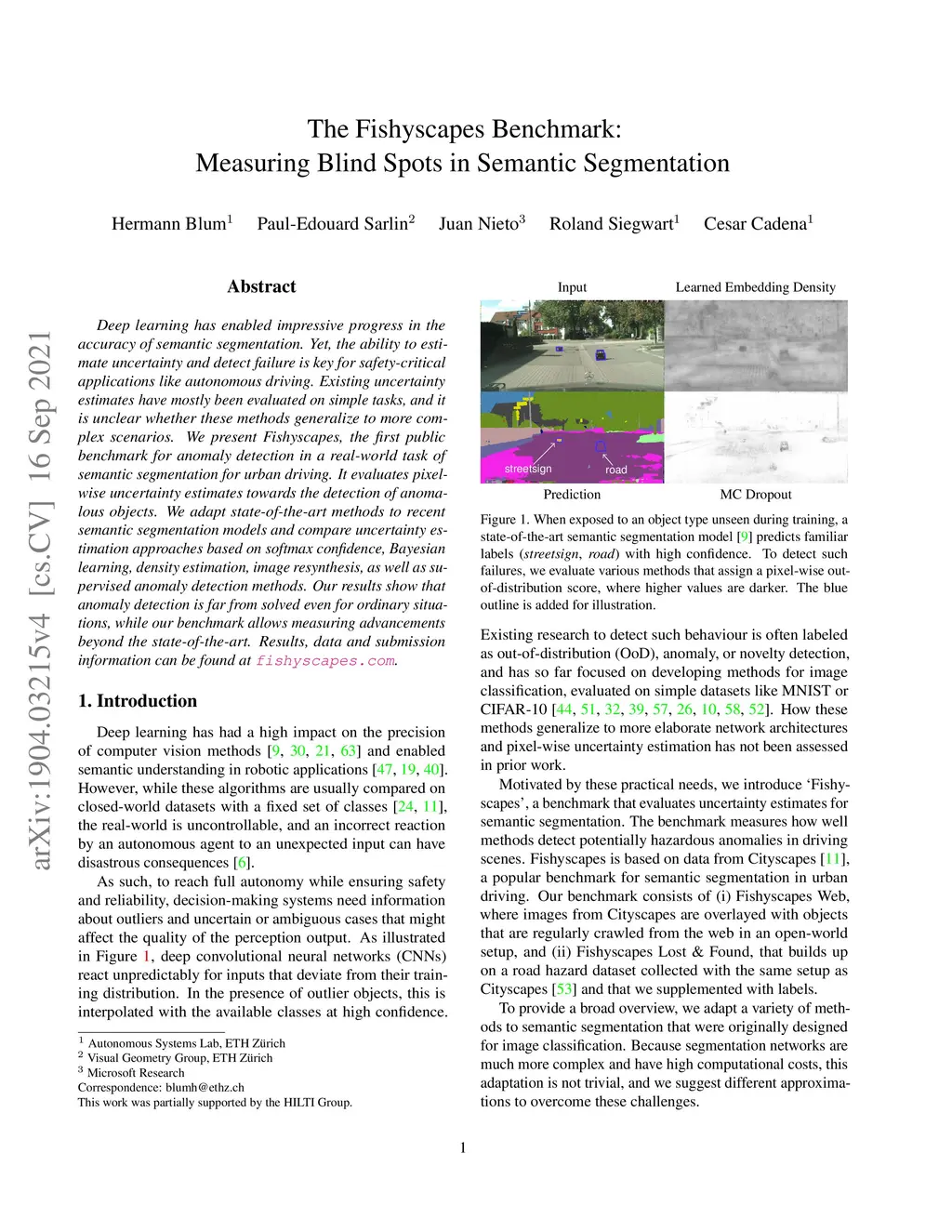 The Fishyscapes Benchmark: Measuring Blind Spots in Semantic