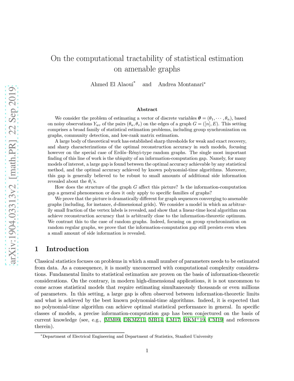 We consider the problem of estimating a vector of discrete variables , based on noisy observations of the pairs on the edges of a graph . This setting comprises a broad family of statistical estimation problems, including group synchronization on graphs, community detection, and low-rank matrix estimation. A large body of theoretical work has established sharp thresholds for weak and exact recovery, and sharp characterizations of the optimal reconstruction accuracy in such models, focusing however on the special case of Erd\"os--R\ényi-type random graphs. The single most important finding of this line of work is the ubiquity of an information-computation gap. Namely, for many models of interest, a large gap is found between the optimal accuracy achievable by any statistical method, and the optimal accuracy achieved by known polynomial-time algorithms. Moreover, this gap is generally believed to be robust to small amounts of additional side information revealed about the 's. How does the structure of the graph affect this picture? Is the information-computation gap a general phenomenon or does it only apply to specific families of graphs? We prove that the picture is dramatically different for graph sequences converging to amenable graphs (including, for instance, -dimensional grids). We consider a model in which an arbitrarily small fraction of the vertex labels is revealed, and show that a linear-time local algorithm can achieve reconstruction accuracy that is arbitrarily close to the information-theoretic optimum. We contrast this to the case of random graphs. Indeed, focusing on group synchronization on random regular graphs, we prove that the information-computation gap still persists even when a small amount of side information is revealed.