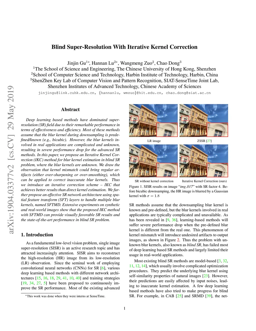 Deep learning based methods have dominated super-resolution (SR) field due to their remarkable performance in terms of effectiveness and efficiency. Most of these methods assume that the blur kernel during downsampling is predefined/known (e.g., bicubic). However, the blur kernels involved in real applications are complicated and unknown, resulting in severe performance drop for the advanced SR methods. In this paper, we propose an Iterative Kernel Correction (IKC) method for blur kernel estimation in blind SR problem, where the blur kernels are unknown. We draw the observation that kernel mismatch could bring regular artifacts (either over-sharpening or over-smoothing), which can be applied to correct inaccurate blur kernels. Thus we introduce an iterative correction scheme -- IKC that achieves better results than direct kernel estimation. We further propose an effective SR network architecture using spatial feature transform (SFT) layers to handle multiple blur kernels, named SFTMD. Extensive experiments on synthetic and real-world images show that the proposed IKC method with SFTMD can provide visually favorable SR results and the state-of-the-art performance in blind SR problem.