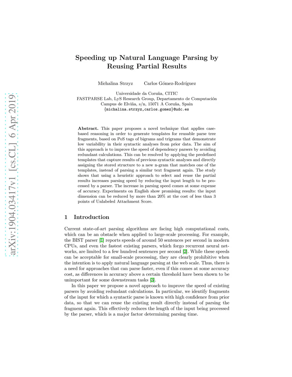Speeding Up Natural Language Parsing by Reusing Partial Results
