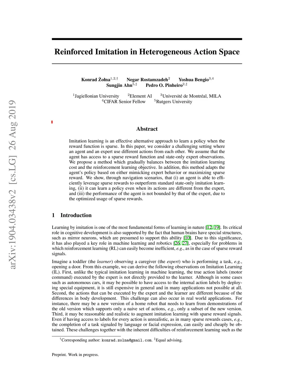 Reinforced Imitation in Heterogeneous Action Space