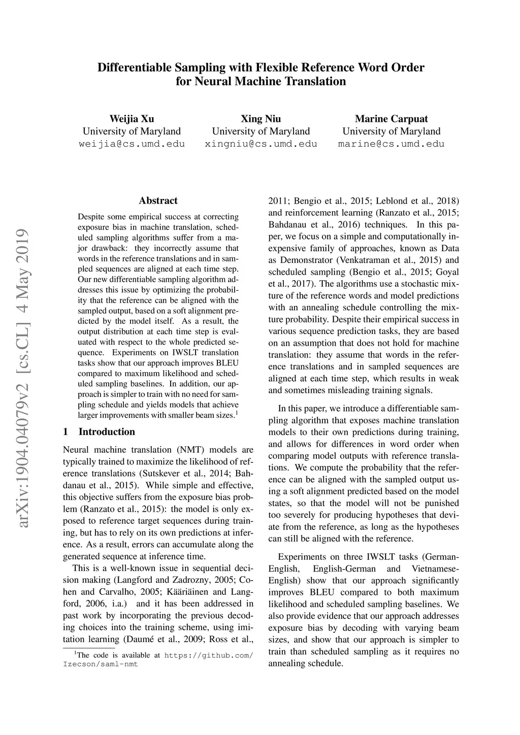Differentiable Sampling with Flexible Reference Word Order for Neural
