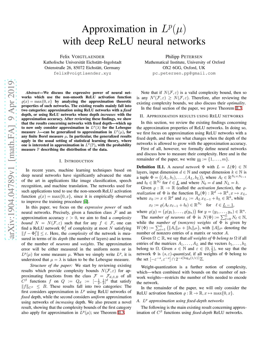 We discuss the expressive power of neural networks which use the non-smooth ReLU activation function by analyzing the approximation theoretic properties of such networks. The existing results mainly fall into two categories: approximation using ReLU networks with a fixed depth, or using ReLU networks whose depth increases with the approximation accuracy. After reviewing these findings, we show that the results concerning networks with fixed depth--- which up to now only consider approximation in for the Lebesgue measure --- can be generalized to approximation in , for any finite Borel measure . In particular, the generalized results apply in the usual setting of statistical learning theory, where one is interested in approximation in , with the probability measure describing the distribution of the data.
