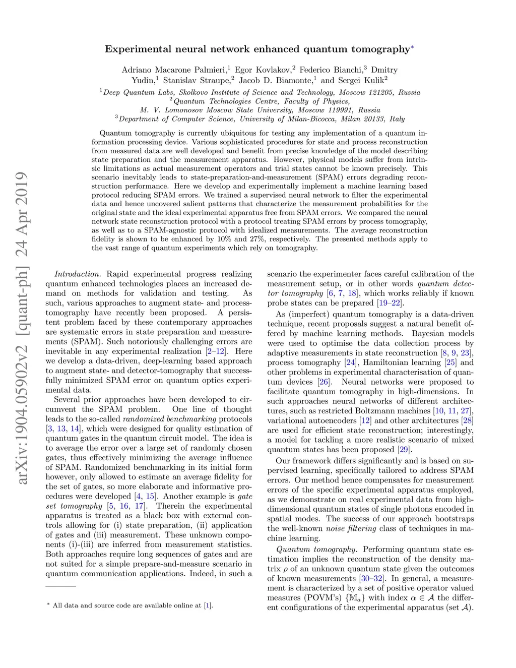 Quantum tomography is currently ubiquitous for testing any implementation of a quantum information processing device. Various sophisticated procedures for state and process reconstruction from measured data are well developed and benefit from precise knowledge of the model describing state preparation and the measurement apparatus. However, physical models suffer from intrinsic limitations as actual measurement operators and trial states cannot be known precisely. This scenario inevitably leads to state-preparation-and-measurement (SPAM) errors degrading reconstruction performance. Here we develop and experimentally implement a machine learning based protocol reducing SPAM errors. We trained a supervised neural network to filter the experimental data and hence uncovered salient patterns that characterize the measurement probabilities for the original state and the ideal experimental apparatus free from SPAM errors. We compared the neural network state reconstruction protocol with a protocol treating SPAM errors by process tomography, as well as to a SPAM-agnostic protocol with idealized measurements. The average reconstruction fidelity is shown to be enhanced by 10\% and 27\%, respectively. The presented methods apply to the vast range of quantum experiments which rely on tomography.