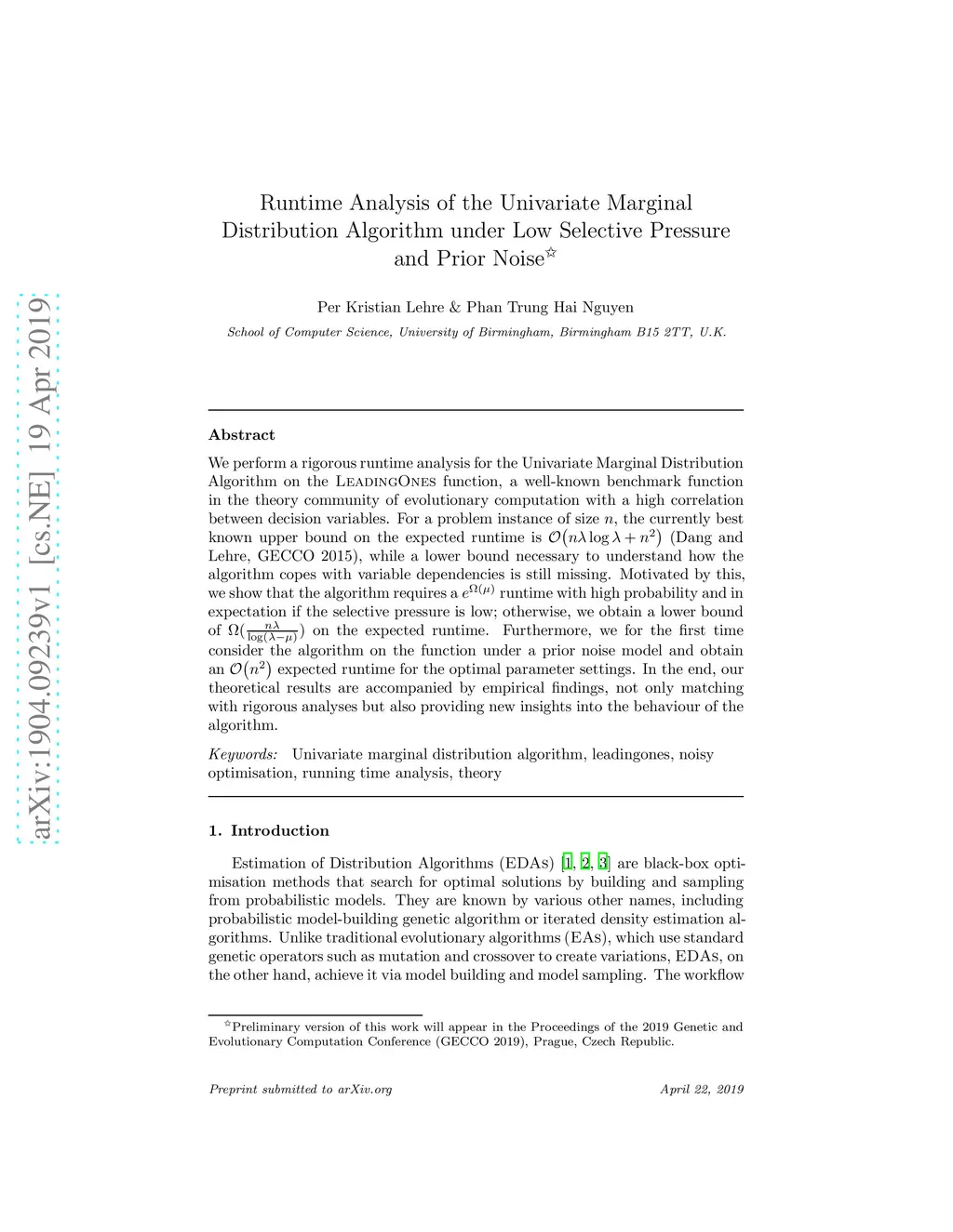 Runtime Analysis of the Univariate Marginal Distribution Algorithm under