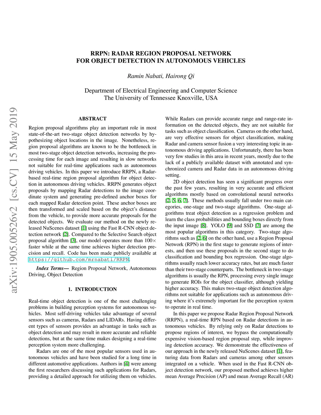 RRPN: Radar Region Proposal Network for Object Detection in Autonomous