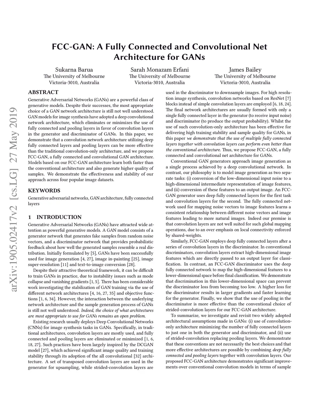 FCC-GAN: A Fully Connected and Convolutional Net Architecture for GANs