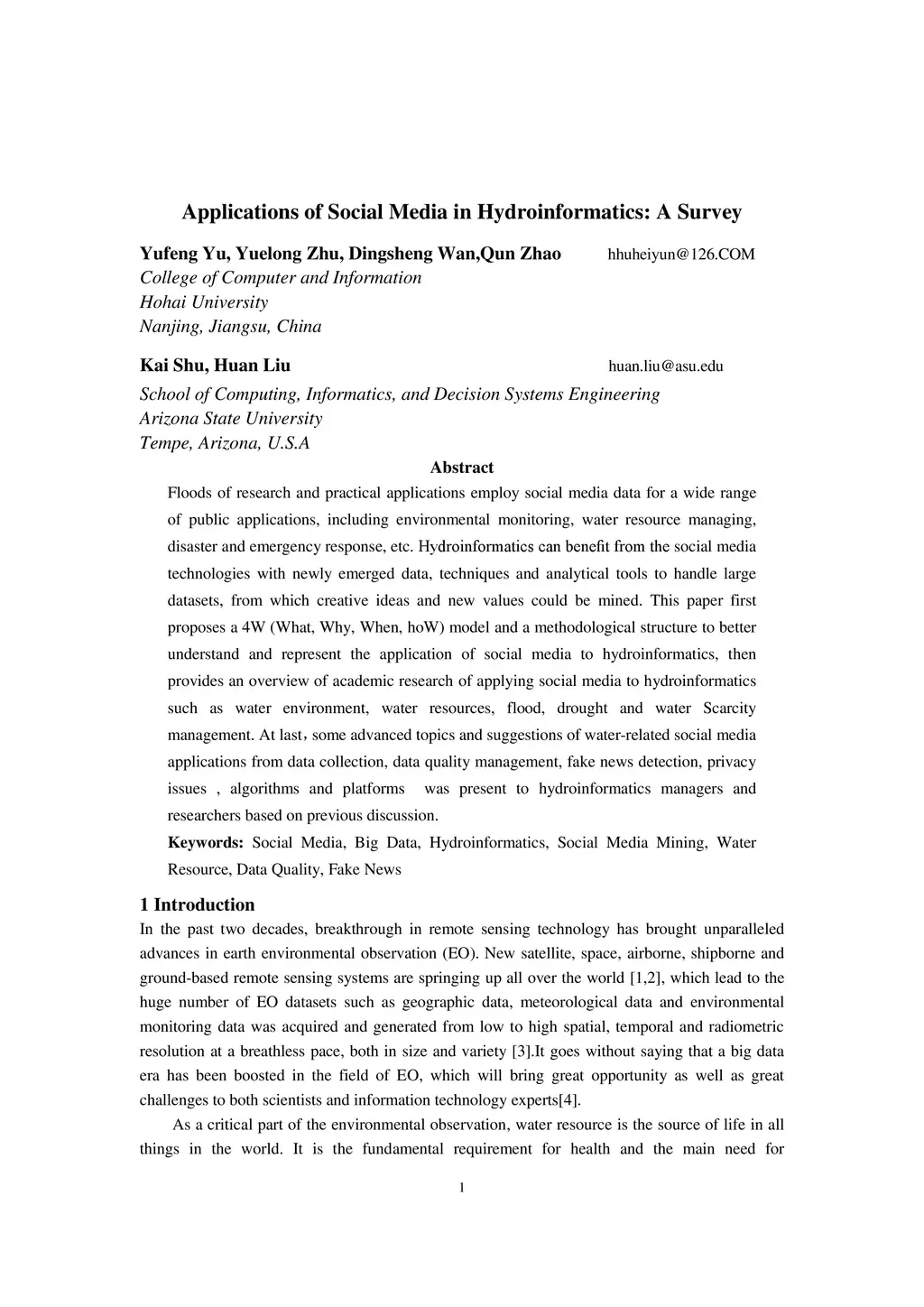 Applications of Social Media in Hydroinformatics: A Survey