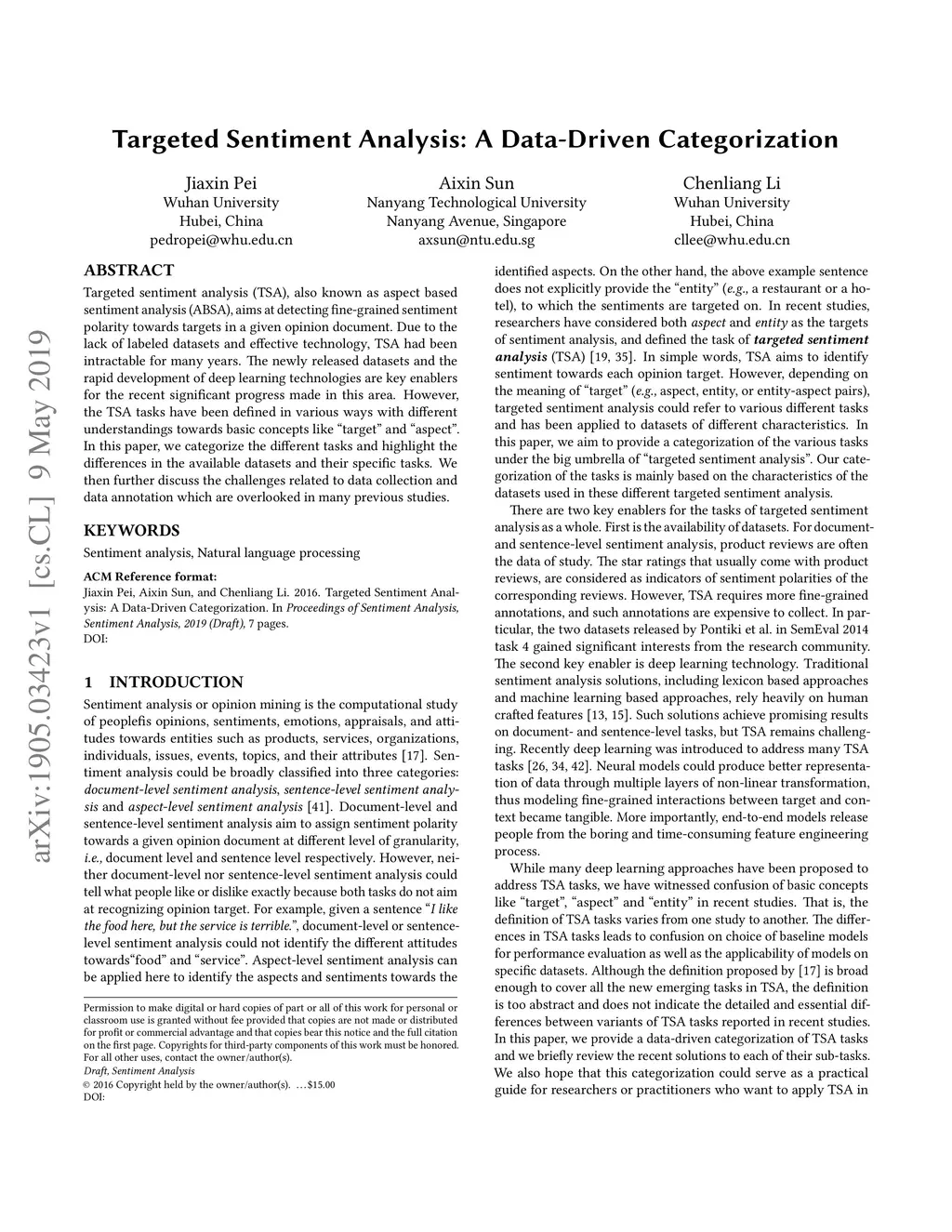 Targeted Sentiment Analysis: A Data-Driven Categorization