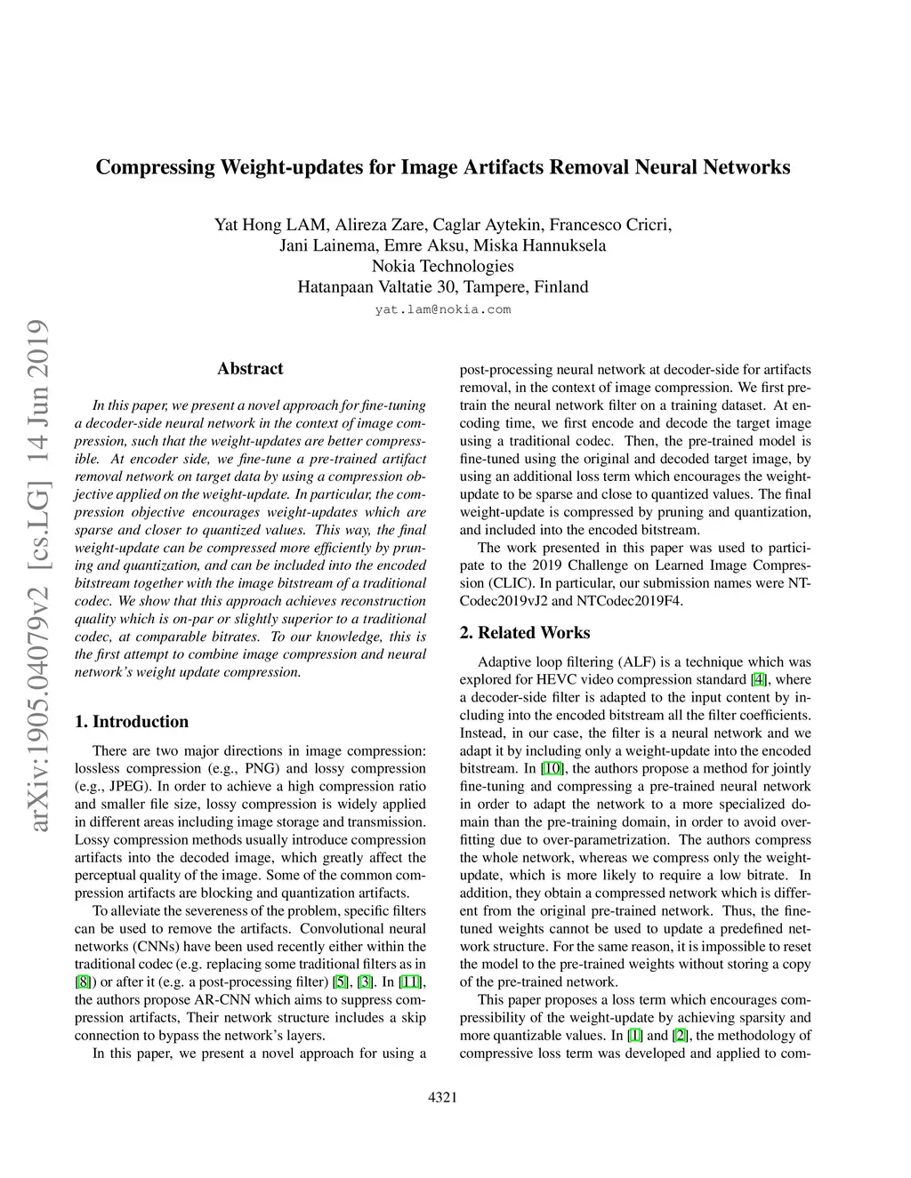 Compressing Weight-updates for Image Artifacts Removal Neural Networks