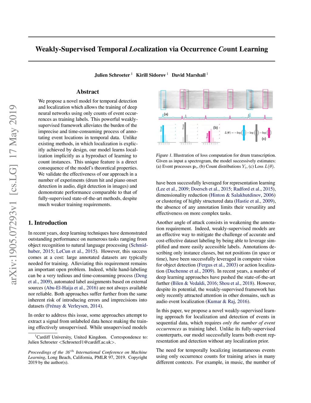 We propose a novel model for temporal detection and localization which allows the training of deep neural networks using only counts of event occurrences as training labels. This powerful weakly-supervised framework alleviates the burden of the imprecise and time-consuming process of annotating event locations in temporal data. Unlike existing methods, in which localization is explicitly achieved by design, our model learns localization implicitly as a byproduct of learning to count instances. This unique feature is a direct consequence of the model's theoretical properties. We validate the effectiveness of our approach in a number of experiments (drum hit and piano onset detection in audio, digit detection in images) and demonstrate performance comparable to that of fully-supervised state-of-the-art methods, despite much weaker training requirements.