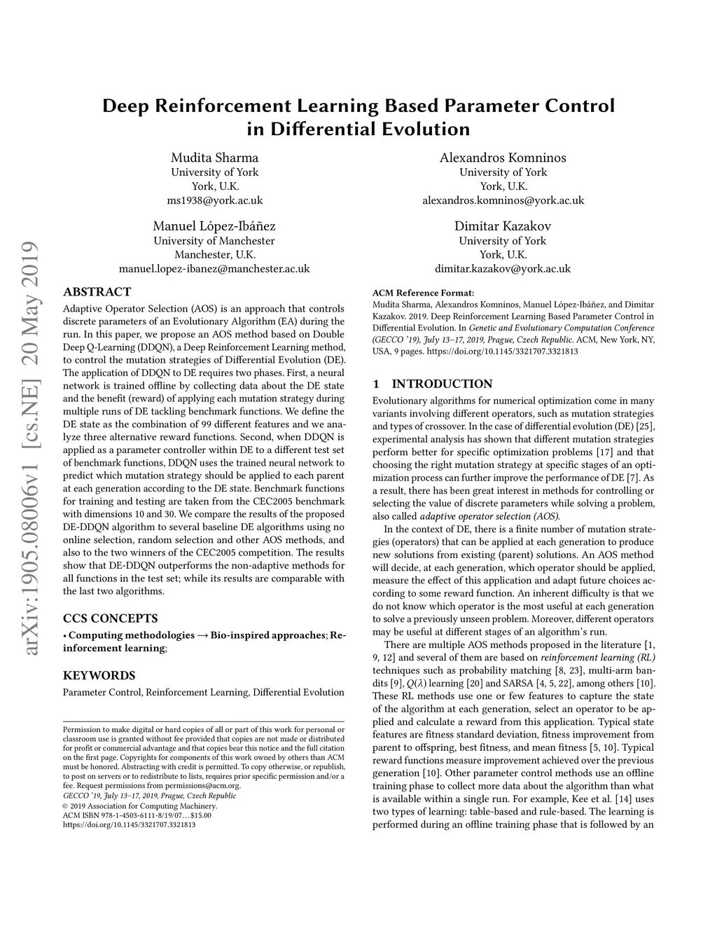 Deep Reinforcement Learning Based Parameter Control in Differential