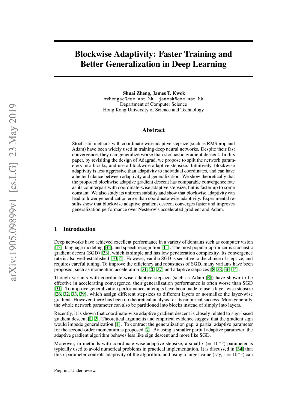 Blockwise Adaptivity: Faster Training and Better Generalization in Deep