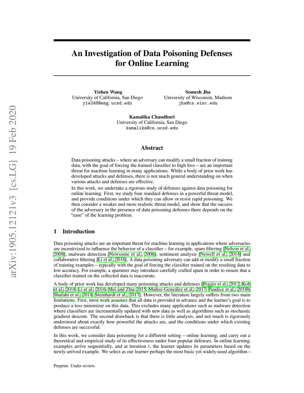 We consider data poisoning attacks, where an adversary can modify a small fraction of training data, with the goal of forcing the trained classifier to have low accuracy. While a body of prior work has developed many attacks and defenses, there is not much general understanding on when various attacks and defenses are effective. In this work, we undertake a rigorous study of defenses against data poisoning in online learning. First, we theoretically analyze four standard defenses and show conditions under which they are effective. Second, motivated by our analysis, we introduce powerful attacks against data-dependent defenses when the adversary can attack the dataset used to initialize them. Finally, we carry out an experimental study which confirms our theoretical findings, shows that the Slab defense is relatively robust, and demonstrates that defenses of moderate strength result in the highest classification accuracy overall.