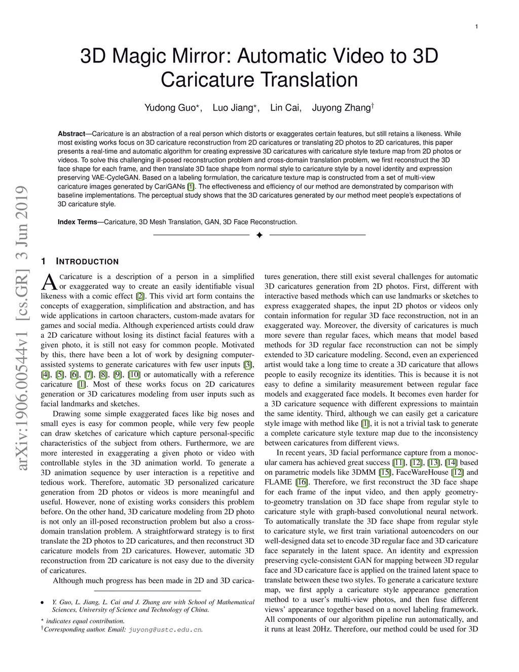 3D Magic Mirror: Automatic Video to 3D Caricature Translation