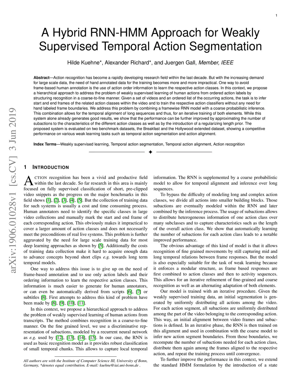 A Hybrid RNN-HMM Approach for Weakly Supervised Temporal Action