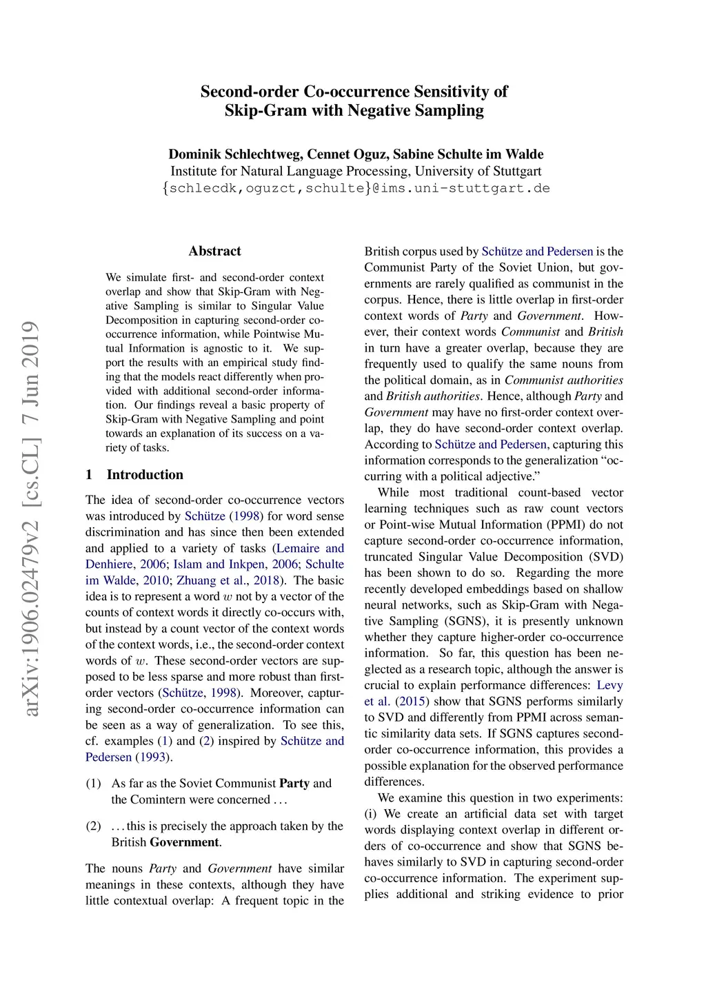 Second-order Co-occurrence Sensitivity of Skip-Gram with Negative