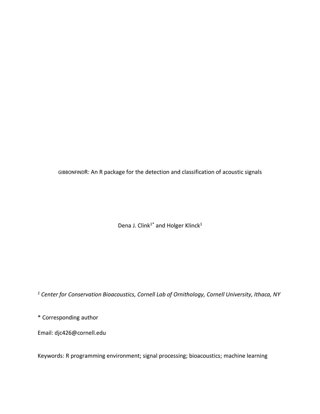 The recent improvements in recording technology, data storage and battery life have led to an increased interest in the use of passive acoustic monitoring for a variety of research questions. One of the main obstacles in implementing wide scale acoustic monitoring programs in terrestrial environments is the lack of user-friendly, open source programs for processing large sound archives. Here we describe the new, open-source R package GIBBONFINDR which has functions for detection, classification and visualization of acoustic signals using a variety of readily available machine learning algorithms in the R programming environment. We provide a case study showing how GIBBONFINDR functions can be used in a workflow to detect and classify Bornean gibbon (Hylobates muelleri) calls in long-term acoustic data sets recorded in Danum Valley Conservation Area, Sabah, Malaysia. Machine learning is currently one of the most rapidly growing fields-- with applications across many disciplines-- and our goal is to make commonly used signal processing techniques and machine learning algorithms readily available for ecologists who are interested in incorporating bioacoustics techniques into their research.
