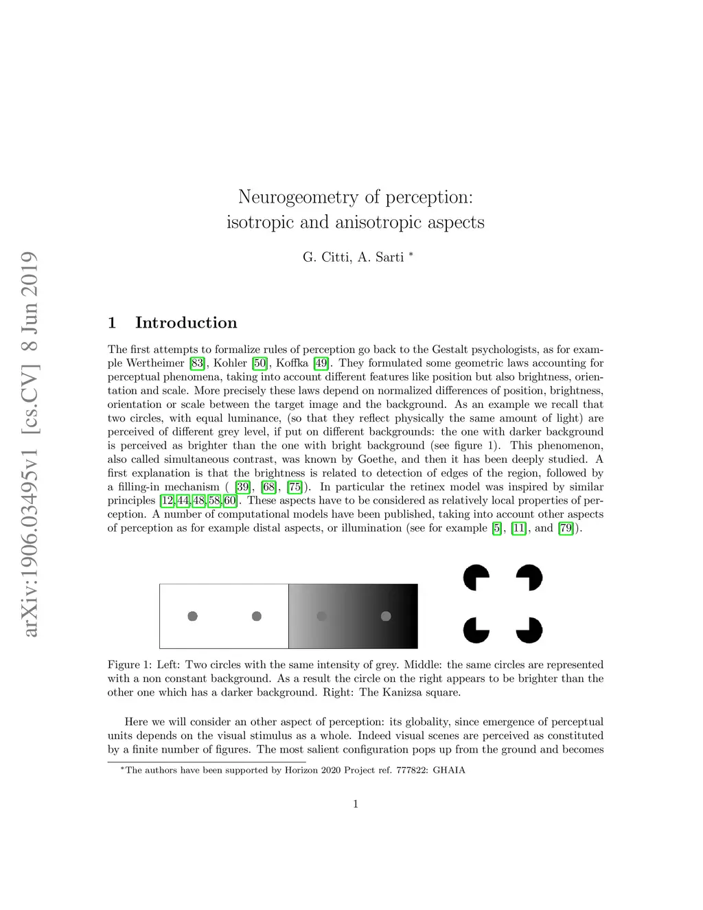 Neurogeometry of perception: isotropic and anisotropic aspects
