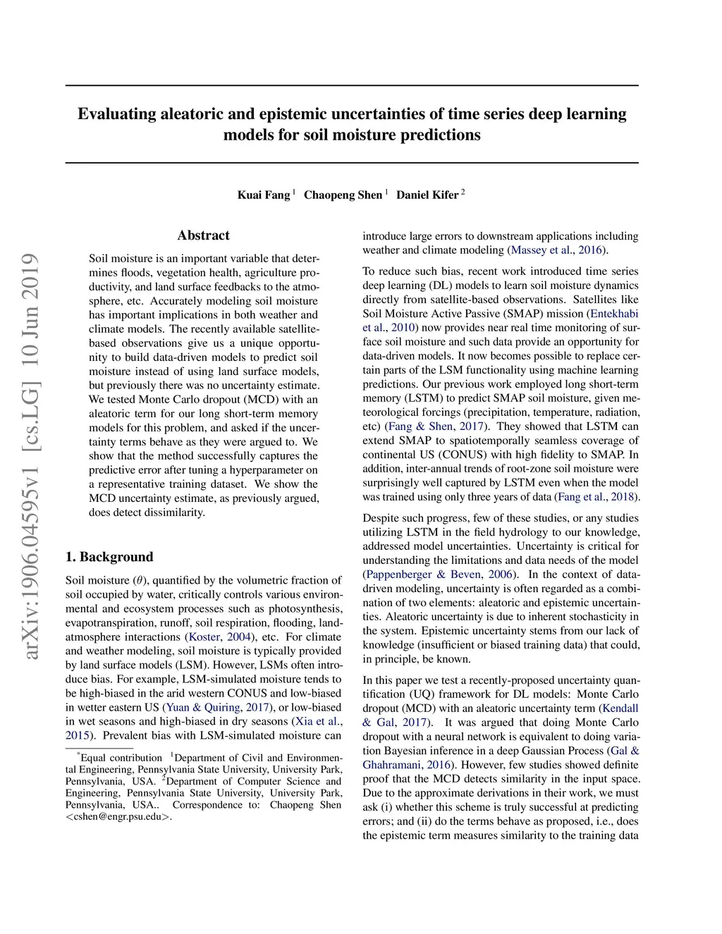 Soil moisture is an important variable that determines floods, vegetation health, agriculture productivity, and land surface feedbacks to the atmosphere, etc. Accurately modeling soil moisture has important implications in both weather and climate models. The recently available satellite-based observations give us a unique opportunity to build data-driven models to predict soil moisture instead of using land surface models, but previously there was no uncertainty estimate. We tested Monte Carlo dropout (MCD) with an aleatoric term for our long short-term memory models for this problem, and asked if the uncertainty terms behave as they were argued to. We show that the method successfully captures the predictive error after tuning a hyperparameter on a representative training dataset. We show the MCD uncertainty estimate, as previously argued, does detect dissimilarity.