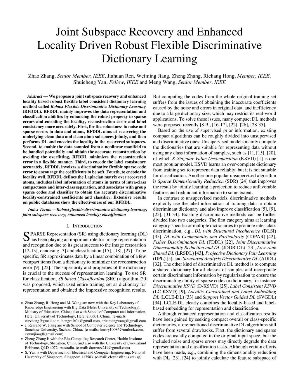 We propose a joint subspace recovery and enhanced locality based robust flexible label consistent dictionary learning method called Robust Flexible Discriminative Dictionary Learning (RFDDL). RFDDL mainly improves the data representation and classification abilities by enhancing the robust property to sparse errors and encoding the locality, reconstruction error and label consistency more accurately. First, for the robustness to noise and sparse errors in data and atoms, RFDDL aims at recovering the underlying clean data and clean atom subspaces jointly, and then performs DL and encodes the locality in the recovered subspaces. Second, to enable the data sampled from a nonlinear manifold to be handled potentially and obtain the accurate reconstruction by avoiding the overfitting, RFDDL minimizes the reconstruction error in a flexible manner. Third, to encode the label consistency accurately, RFDDL involves a discriminative flexible sparse code error to encourage the coefficients to be soft. Fourth, to encode the locality well, RFDDL defines the Laplacian matrix over recovered atoms, includes label information of atoms in terms of intra-class compactness and inter-class separation, and associates with group sparse codes and classifier to obtain the accurate discriminative locality-constrained coefficients and classifier. Extensive results on public databases show the effectiveness of our RFDDL.