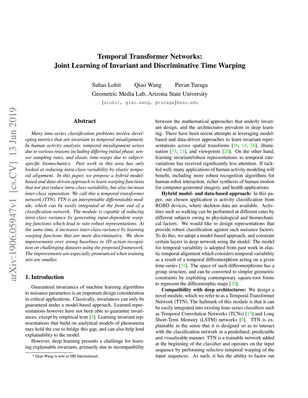 Temporal Transformer Networks: Joint Learning of Invariant and