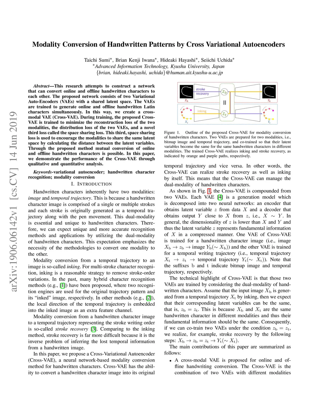 Modality Conversion of Handwritten Patterns by Cross Variational