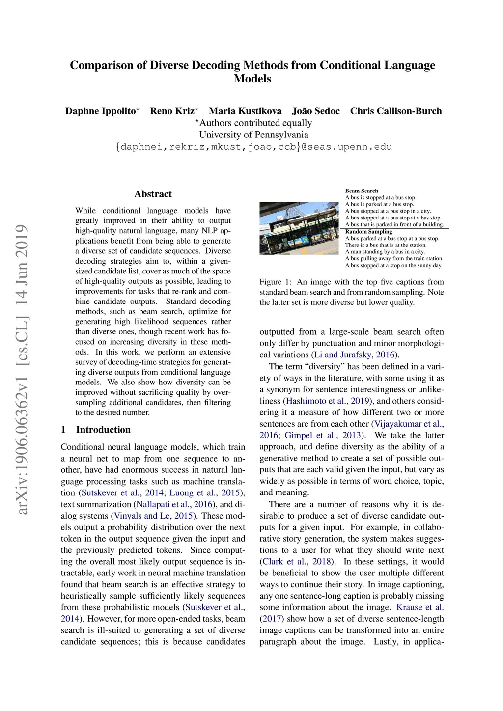 Comparison of Diverse Decoding Methods from Conditional Language Models