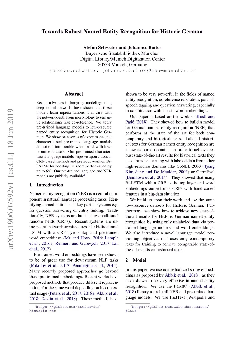 Towards Robust Named Entity Recognition for Historic German
