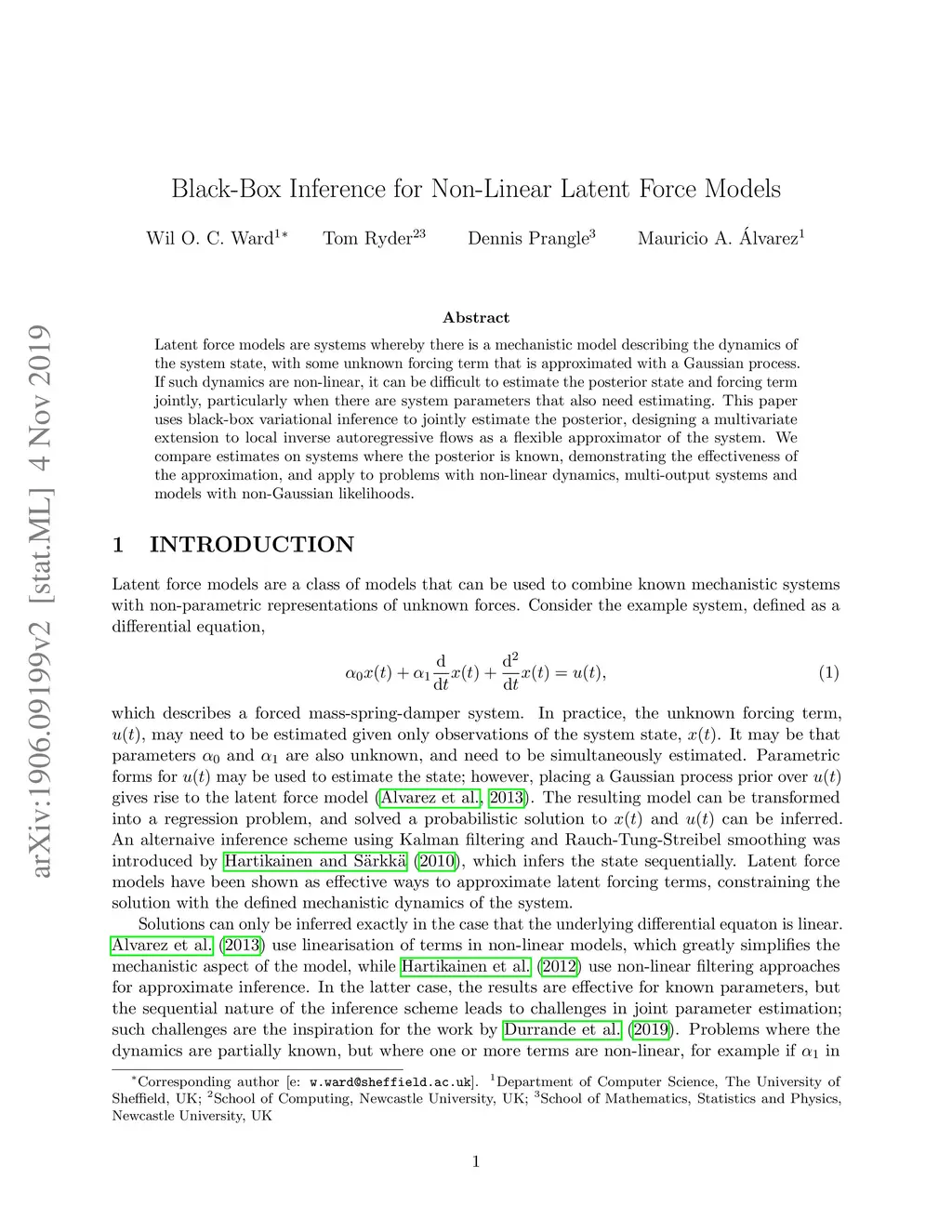 Latent force models are systems whereby there is a mechanistic model describing the dynamics of the system state, with some unknown forcing term that is approximated with a Gaussian process. If such dynamics are non-linear, it can be difficult to estimate the posterior state and forcing term jointly, particularly when there are system parameters that also need estimating. This paper uses black-box variational inference to jointly estimate the posterior, designing a multivariate extension to local inverse autoregressive flows as a flexible approximater of the system. We compare estimates on systems where the posterior is known, demonstrating the effectiveness of the approximation, and apply to problems with non-linear dynamics, multi-output systems and models with non-Gaussian likelihoods.