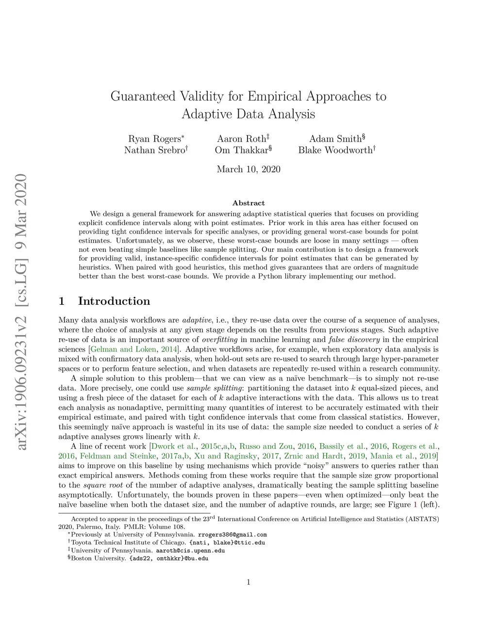 We design a general framework for answering adaptive statistical queries that focuses on providing explicit confidence intervals along with point estimates. Prior work in this area has either focused on providing tight confidence intervals for specific analyses, or providing general worst-case bounds for point estimates. Unfortunately, as we observe, these worst-case bounds are loose in many settings --- often not even beating simple baselines like sample splitting. Our main contribution is to design a framework for providing valid, instance-specific confidence intervals for point estimates that can be generated by heuristics. When paired with good heuristics, this method gives guarantees that are orders of magnitude better than the best worst-case bounds. We provide a Python library implementing our method.
