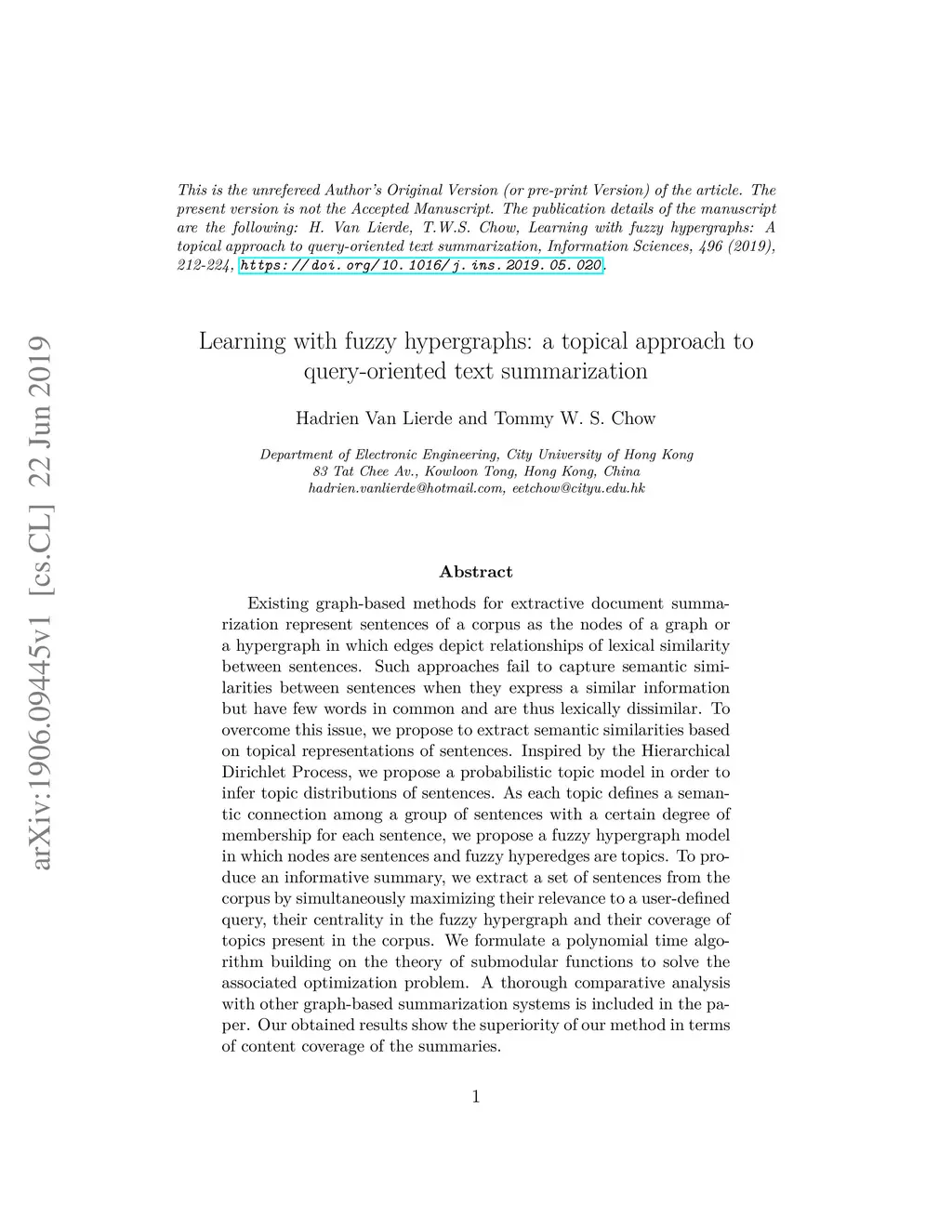 Learning with fuzzy hypergraphs: a topical approach to query-oriented